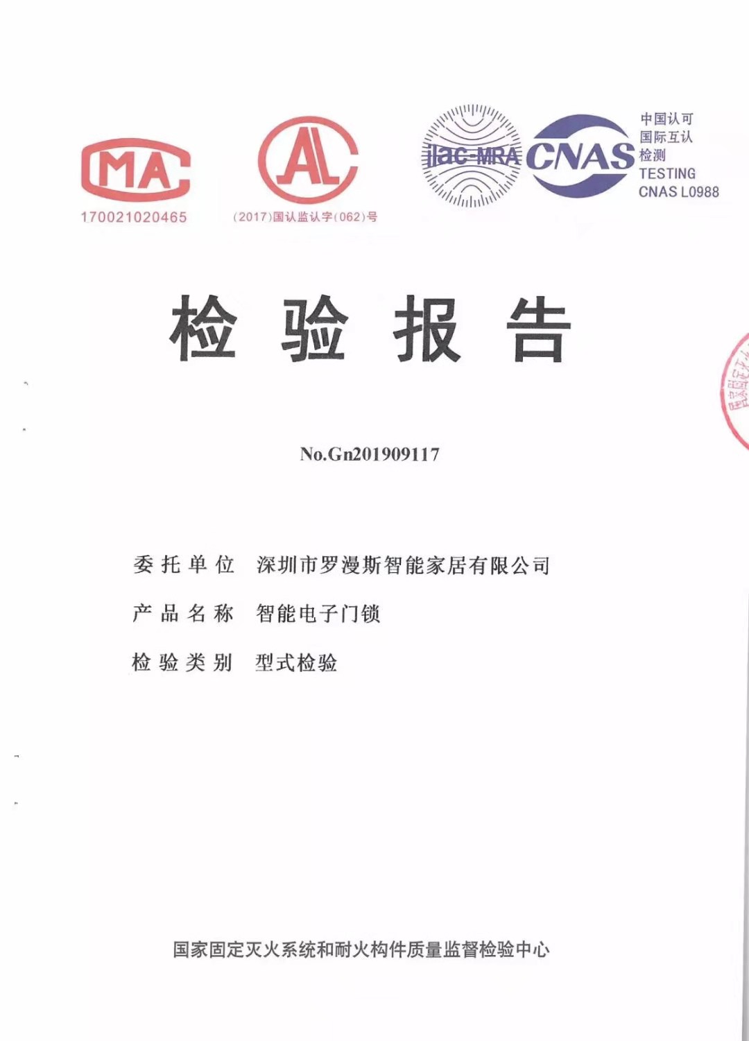 ? ?智能門鎖耐火性能檢測等檢測認證,不僅僅是防火,更體現了羅曼斯始終以客戶的根本利益為出發點,堅持向客戶及市場輸出高品質智能鎖產品、守護用戶居家安全的決心。