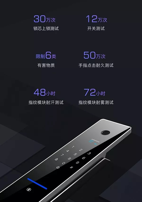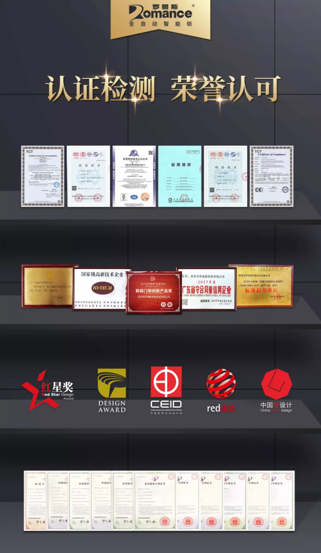 ? ? ? 產(chǎn)品品質(zhì)是羅曼斯的品牌基石,作為行業(yè)尖端的代表性產(chǎn)品,羅曼斯堅(jiān)守國(guó)際及行業(yè)標(biāo)準(zhǔn)專注每一處的細(xì)節(jié)品質(zhì),羅曼斯全自動(dòng)智能鎖先后經(jīng)過(guò)12萬(wàn)次開關(guān)測(cè)試、30萬(wàn)次鎖芯上鎖測(cè)試,限制6類有害物質(zhì)、紫外線測(cè)試、鹽霧測(cè)試;產(chǎn)品更是經(jīng)過(guò)國(guó)家權(quán)威機(jī)構(gòu)檢驗(yàn)檢測(cè),確保每一把鎖都承載羅曼斯對(duì)您智能生活夢(mèng)想的追求。