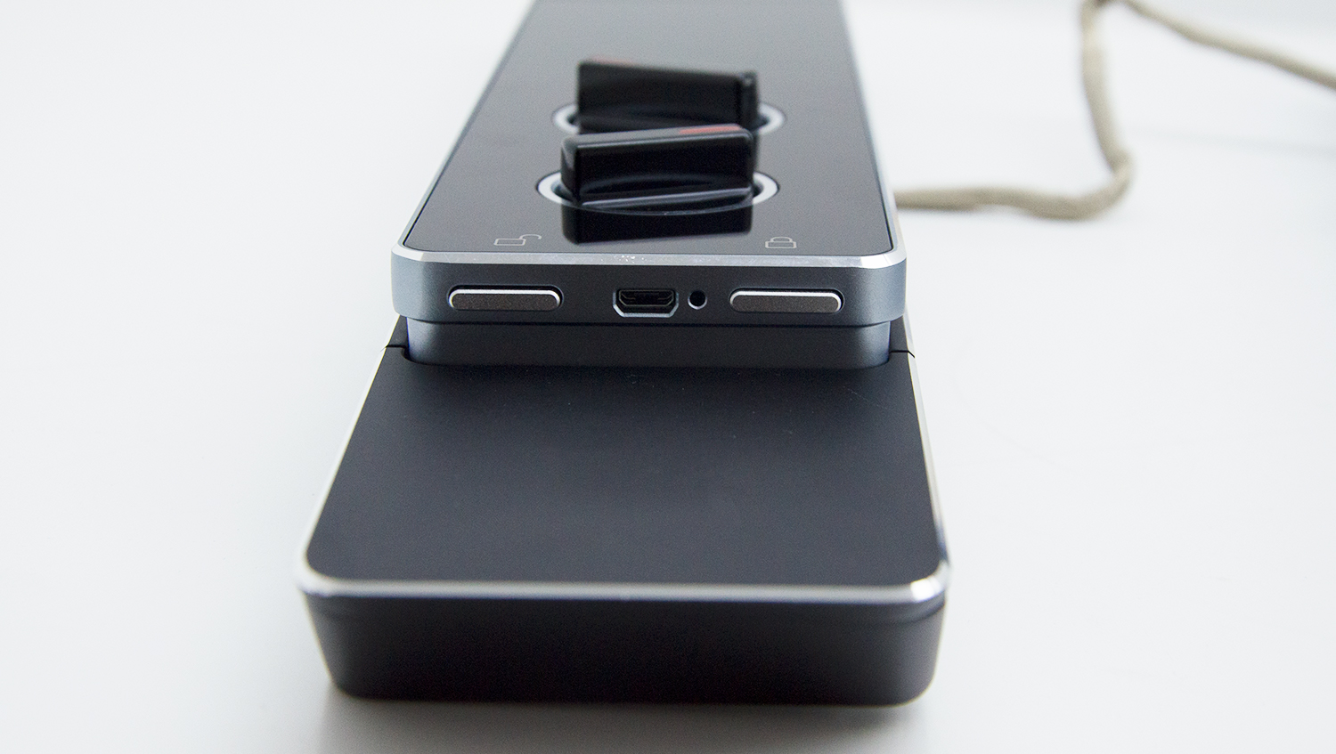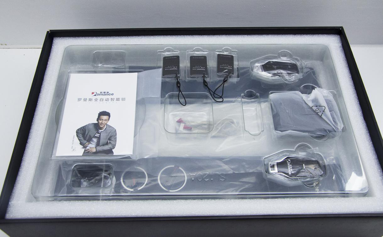 下面我們來看一下A8的全體成員:前后鎖板各一個、鎖芯、前后鎖板連接線1條、2把鑰匙、2個遙控器、3張IC卡、充電寶1個、充電線1條、螺絲配件包1份、三包服務1份等。零件基本做工細致,用手摸上去,觸感光滑,很有質感。