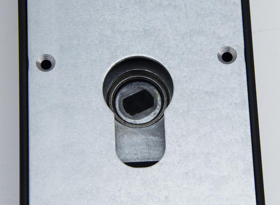 ? ? ? ?后鎖板上面有兩個旋鈕:室內應急旋鈕和內保險旋鈕。